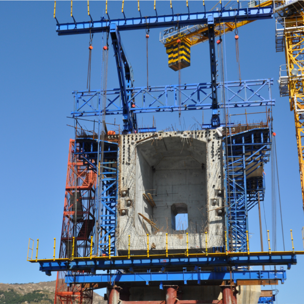 桥梁挂篮主要应用在跨路、跨河等桥梁的施工中,采用悬臂浇筑的方式施工,按结构形式可分为桁架式、斜拉式、型钢式及混合式4种,目前比较常用的是桁架式菱形挂篮,主要组成部分:主桁架、悬吊系统、锚固系统、走行系统、底模板;其结构简单、拆装锚固方便、受力明确,下部有较大的空间,有较大的施工作业面,无需中断主路交通,不占用地面,靠挂篮自身的行走系统实现前移,施工时每次浇筑2-4米,待混凝土达到硬化要求后,依靠挂篮的行走系统、液压装置,移动到新一段的施工浇筑位置;桥梁挂篮可以循环利用,主跨在一定范围内的桥梁能实现通用。